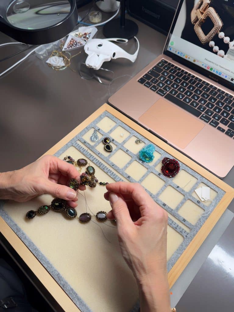 Il m’arrive aussi de défaire un bijou presque terminé s’il ne me plaît pas.