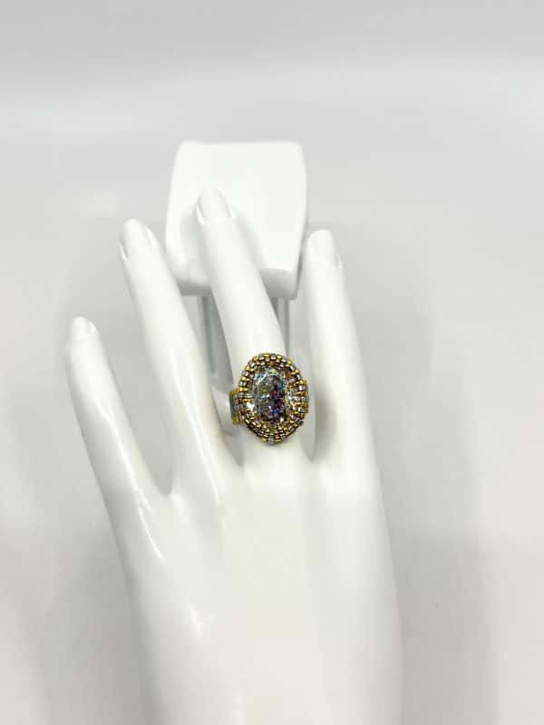 Cette bague artisanale cristal autrichien associe élégance et savoir-faire fait main. Elle met en valeur un cabochon Cristal White Patina de 18×13 mm, dont les reflets lumineux attirent immédiatement le regard. Ainsi, ce bijou apporte une touche raffinée aussi bien au quotidien que lors d’occasions spéciales.