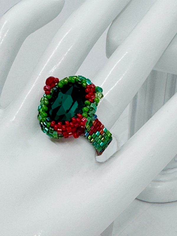 Cette bague couleur d’été en cristal autrichien séduit par son éclat vif et sa palette énergétique de rouge, vert et turquoise. Tissée à la main avec un cabochon cristaux autrichiens scintillant et des perles japonaises Miyuki, elle offre une touche lumineuse et audacieuse à votre style, en toute saison.