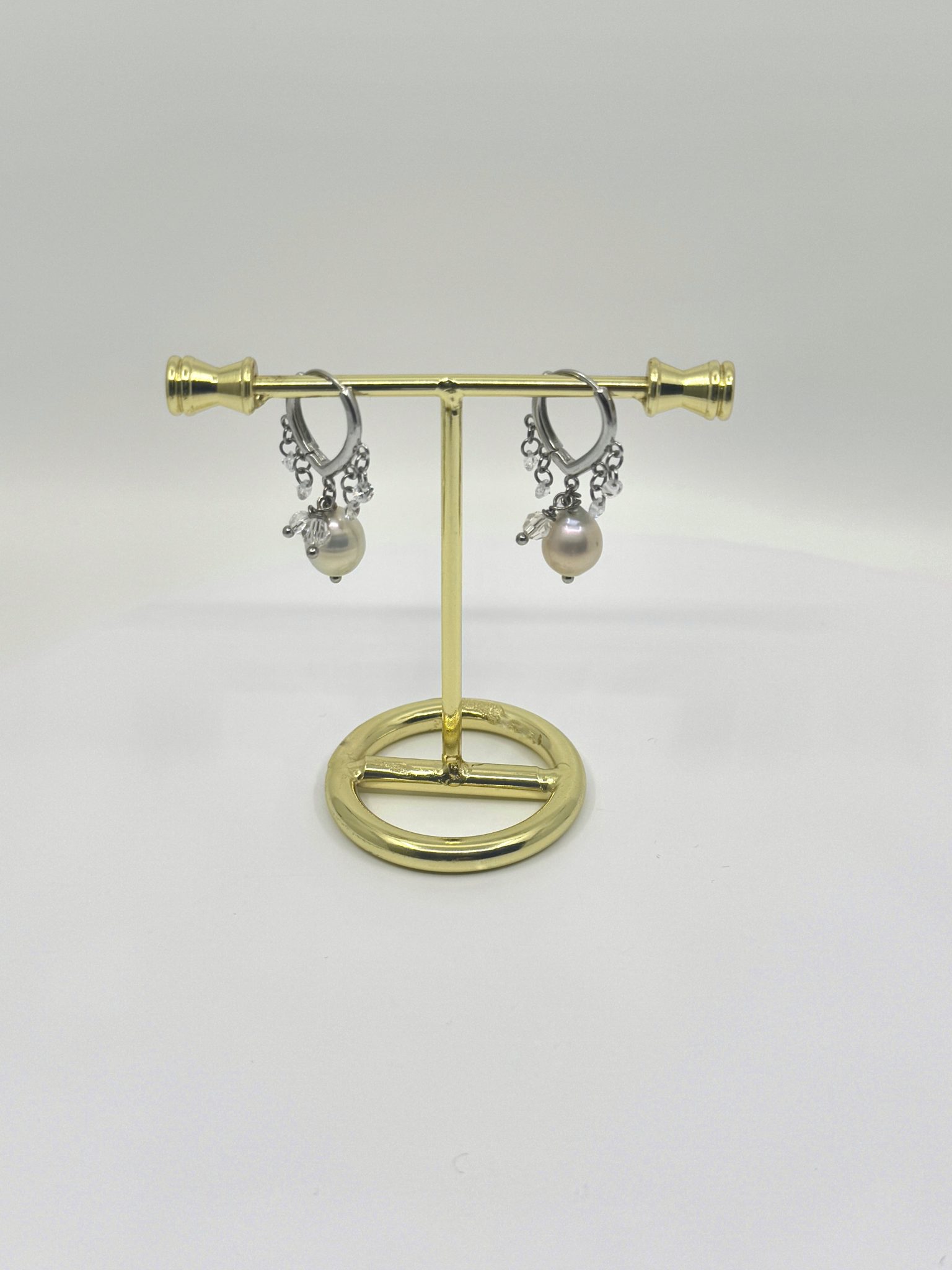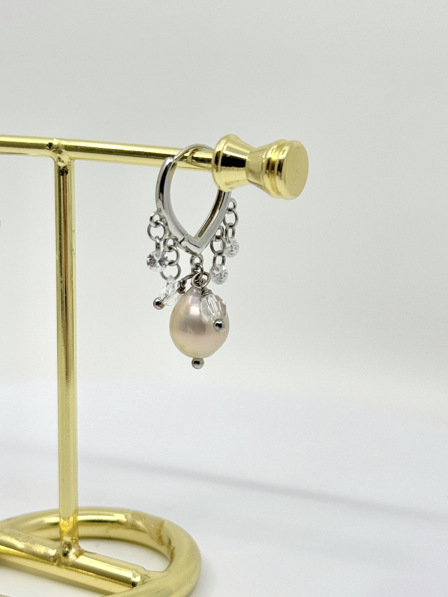 Composées de perles de culture en forme d’ovale (10 mm). Elles reflètent une lumière douce et captivante. Et puis leurs reflets nacrés illuminent le visage, apportant une touche de douceur à chaque mouvement. Les créoles à clip de 16 mm, ornées de cinq anneaux fermés avec du zirconium 3 mm, ajoutent une brillance subtile qui complète l’ensemble avec harmonie.