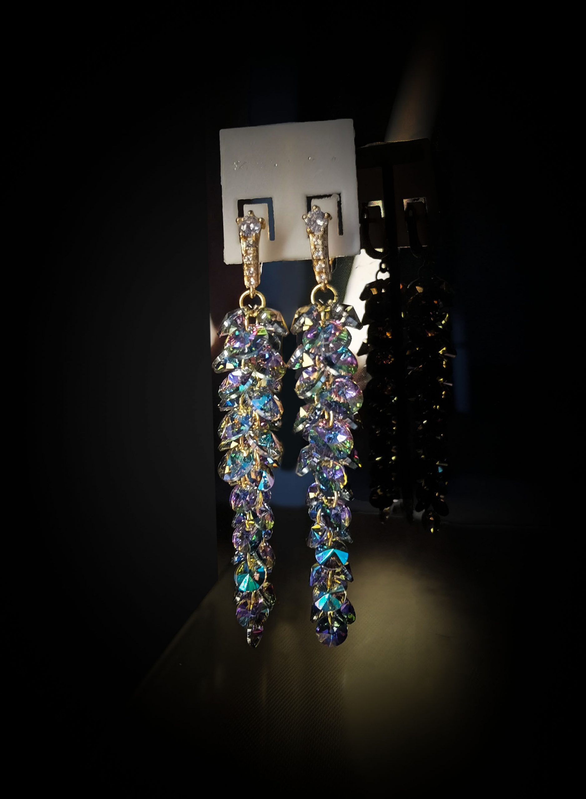 Ces pendentifs sont composés de cristaux autrichiens aux nuances changeantes, ce qui leur confère un éclat exceptionnel. Ainsi, chaque mouvement révèle de nouvelles couleurs, créant un effet hypnotisant.
