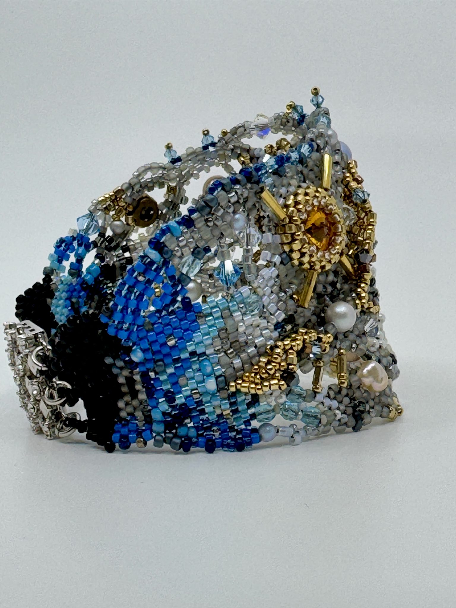 Le Bracelet Galaxie Cristaux Swarovski illumine votre poignet d’un éclat cosmique. Réalisé à la main avec des perles japonaises Miyuki et des cristaux Swarovski®, il incarne la beauté et la précision artisanale.