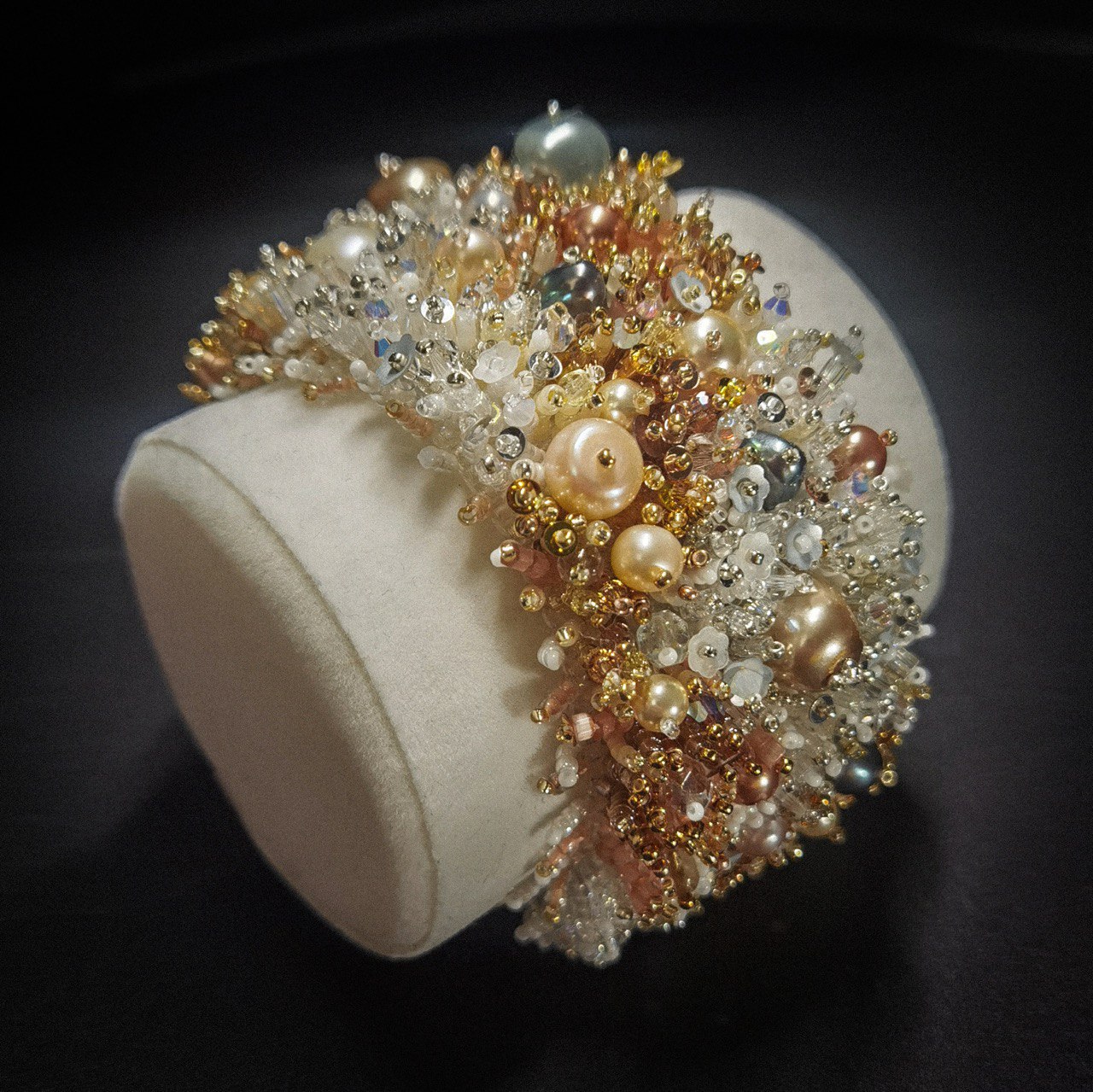 Chaque bracelet est réalisé entièrement à la main, perle après perle. Aussi, son volume généreux et ses teintes chaudes en font une pièce forte, élégante et hors du temps. Enfin, son caractère unique en fait un cadeau idéal pour célébrer un moment précieux.