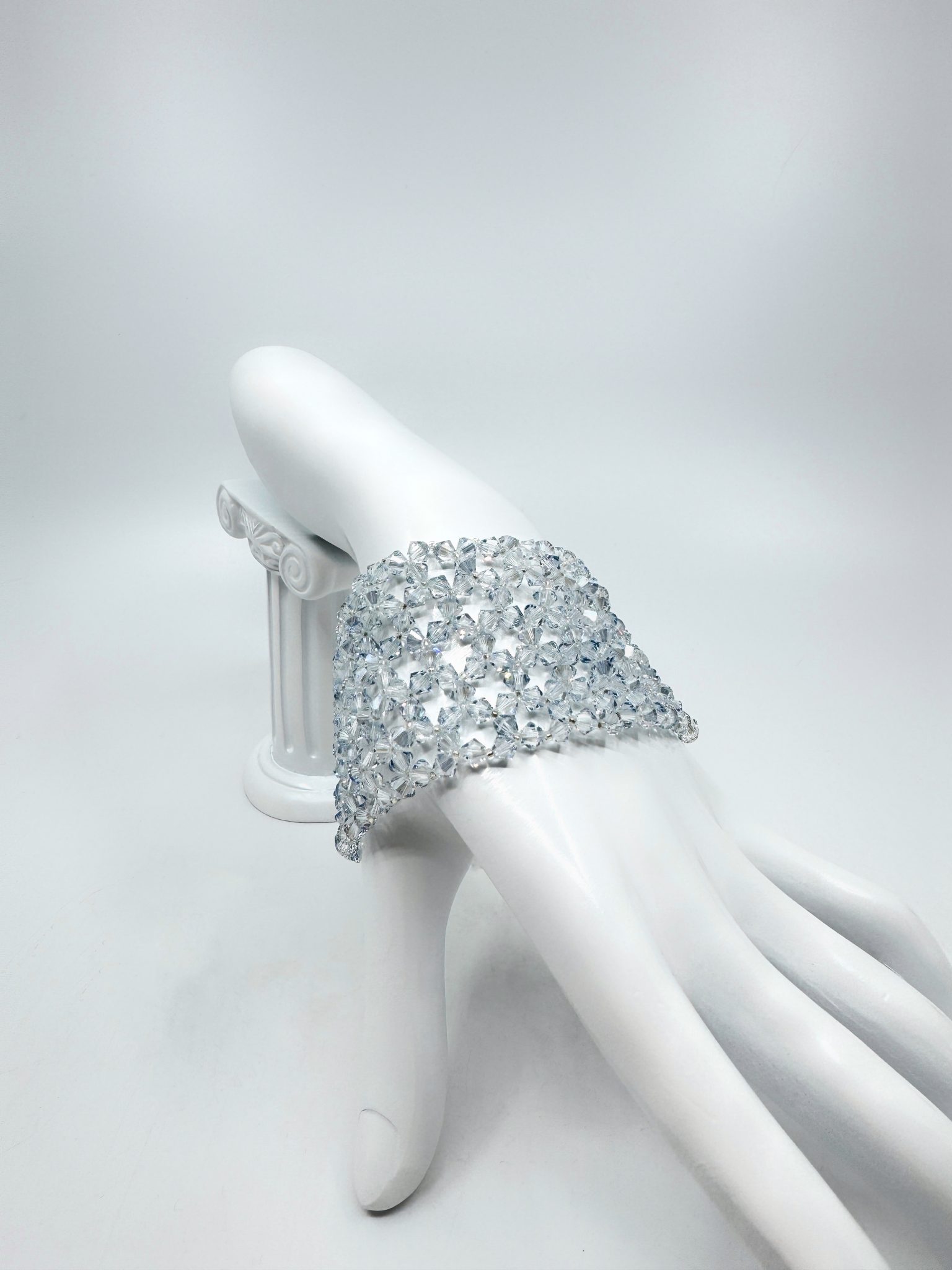 Chaque bracelet est minutieusement réalisé à la main. De plus, la technique utilisée assure une structure légère mais résistante, où les cristaux s’entrelacent en un motif géométrique rappelant une constellation. Par conséquent, le bracelet Moscou Star en cristaux Swarovski allie confort, solidité et brillance.