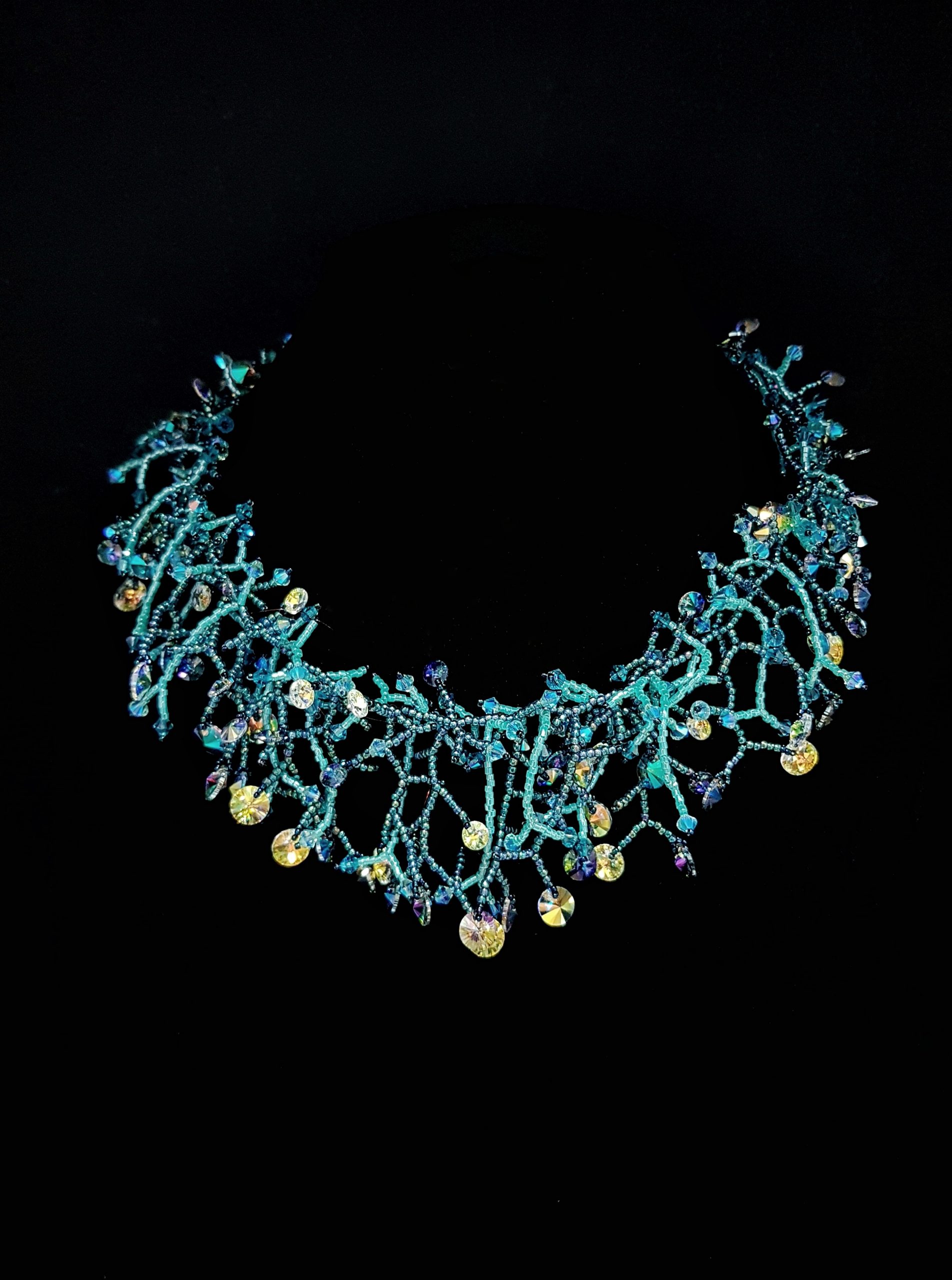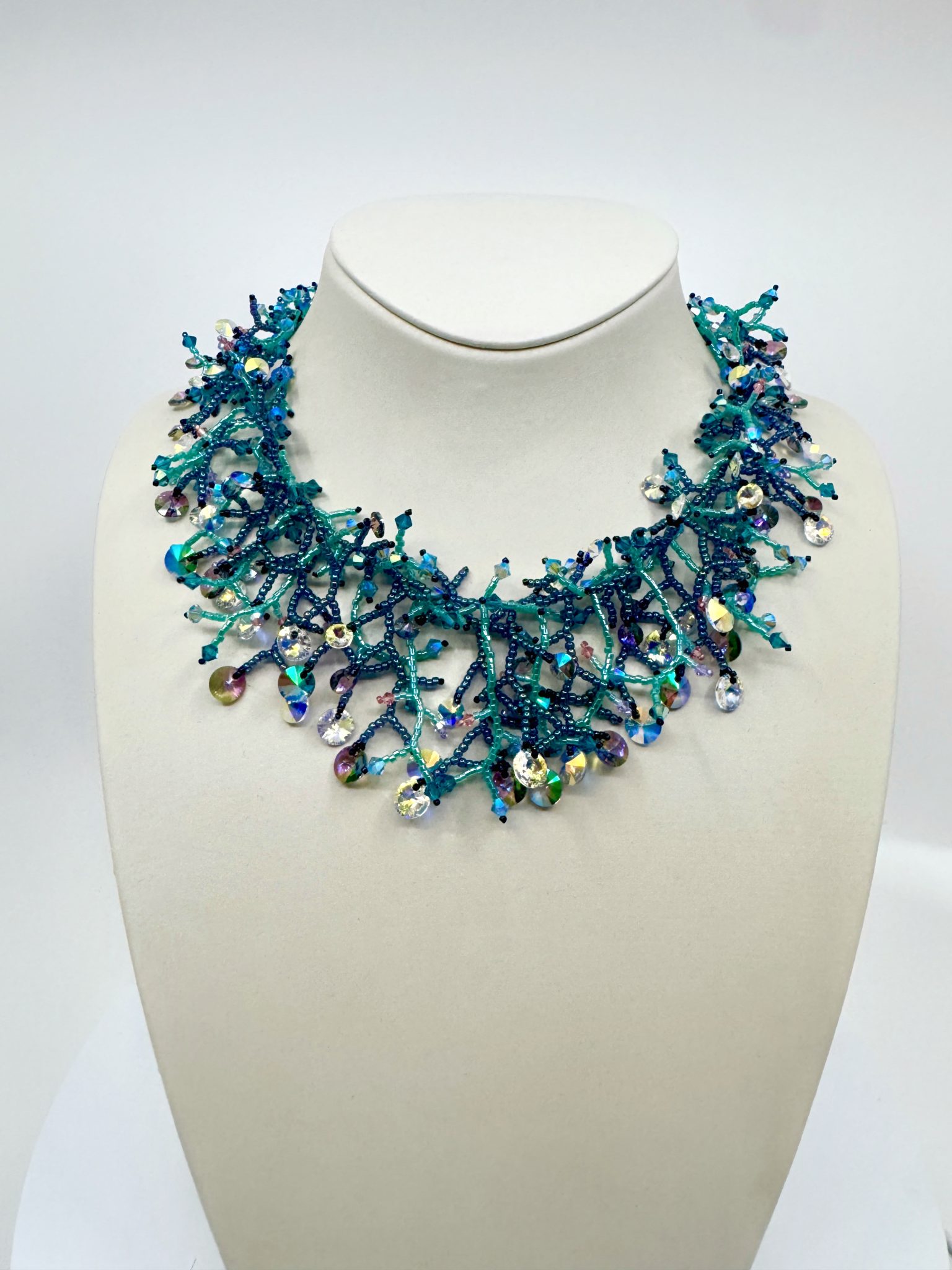 Ce collier cascade cristaux Swarovski est idéal pour une soirée, une fête ou un événement spécial. De plus, ses teintes bleutées et irisées mettent en valeur tous les types de carnations. C’est une création artistique, vibrante, contemporaine et résolument féminine.