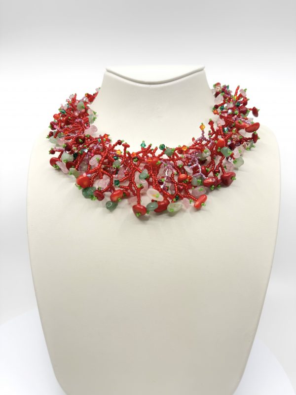Le collier pierres naturelles artisanal “Bouquet Écarlate” est une pièce vibrante, colorée et soigneusement tissée à la main. Ainsi, chaque détail est pensé pour offrir un bijou expressif, délicat et agréable à porter. De plus, la richesse de ses textures lui confère un éclat naturel et chaleureux.